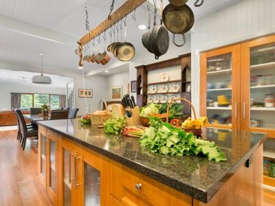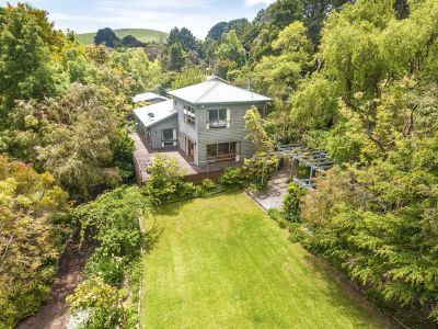 Located between the Great Ocean road and the Great Otway National Park, the Wongarra Truffle Farm is one of the Otways most unique estates. Set on 88 acres, the property is overflowing with natural beauty, an abundance of produce and faultless style. The two storey cedar home is nestled in a sheltered rainforest gully next to a waterfall and is surrounded by an established exotic garden. With two permanent creeks running through the lush pasture, the property produces a veritable cornucopia of the finest produce including grass-fed beef and lamb, free-range, rare-breed pork, pastured eggs, heritage fruit, heirloom vegetables, fresh herbs and the culinary diamonds this propertys name is based on Perigord black truffles.