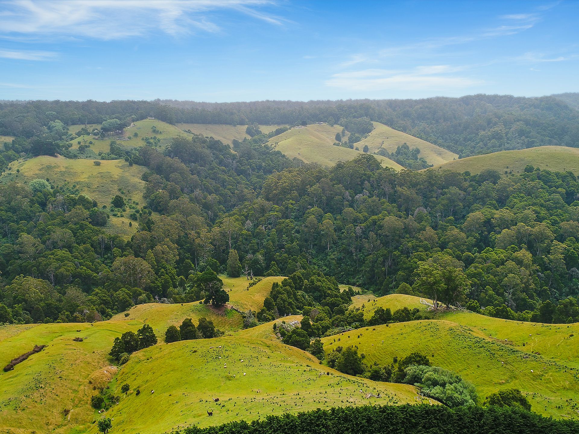 Here, where deep green rolling hills meet azure skies resides a residence of natural beauty hidden within Apollo Bay’s majestic landscape with expansive views stretching to the ocean below. Located only 7kms from Apollo Bay and set on an impressive 102 acres (approx.) of rural land adjoining the West Barham River.