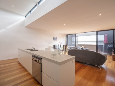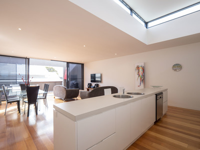 •spacious open plan kitchen/dining/living with sun filled private balcony