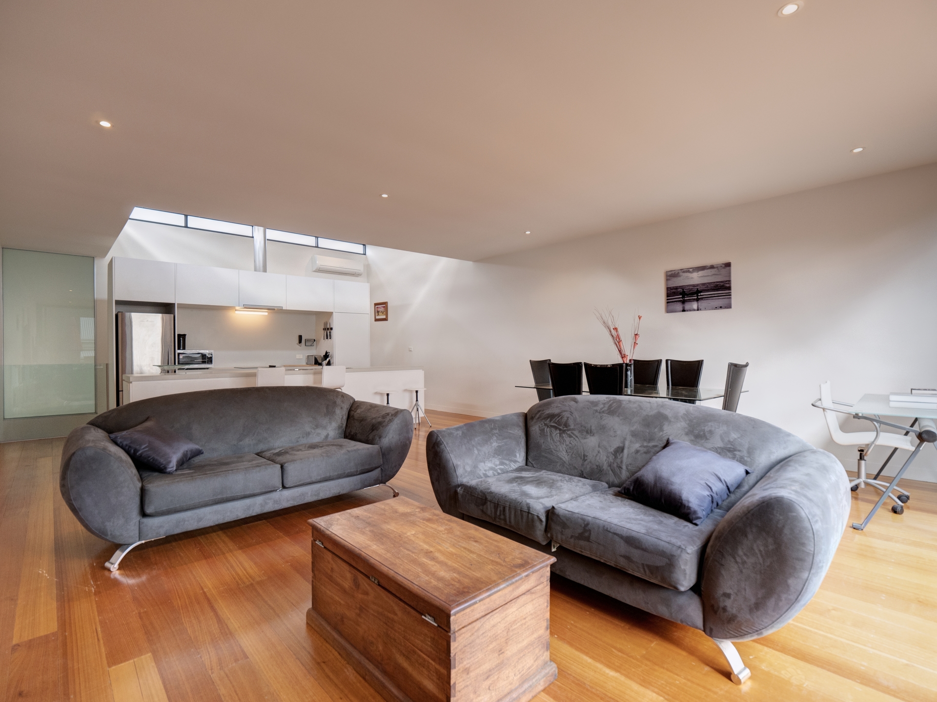 The entry level includes two spacious bedrooms, both with built in robes and floor to ceiling sliding door access to the north facing private courtyard, a centrally placed bathroom, European style laundry and ample storage. Upstairs enjoy the light filled open plan living with floor to ceiling sliding glass doors opening on to the north facing outdoor entertaining deck, impressive kitchen and master suite. Other features include newly polished concrete floors downstairs, newly polished timber floorboards upstairs, extra high ceilings throughout, split system heating and cooling for year round comfort, low maintenance courtyard with internal and external access, an abundance of storage including external secure cupboard space for all of your outdoor equipment. Inspections available by appointment.