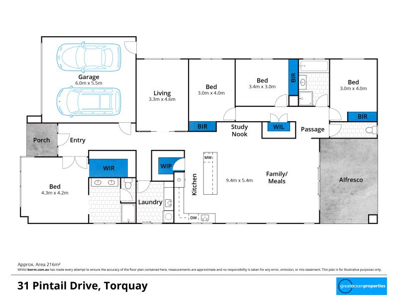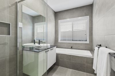 With an impressive, functional floorplan & contemporary design aesthetics, this home offers the ideal base for modern family living. Located in the popular Zeally Sands Estate, this 4BR home includes a private master retreat with walk in robe, spacious en-suite & separate toilet. Boasting 2 living spaces & perfectly positioned for an abundance of natural light with north-facing open plan living, meals & kitchen, the family can come together to connect, whilst enjoying the privacy of zoned sleeping quarters.The central family bathroom echoes the same quality features & floor to ceiling tiles as the en suite, with the addition of a bath & separate toilet in the west wing. Soothing, neutral interior tones meet rich merbau decking & graphite coloured brickwork, lawn & beautiful landscaping that will grow to offer screening & privacy. Effortless connection to the outdoors is achieved with double sliding doors to the extended covered north alfresco area for year-round entertaining. An additional living space offers options for a rumpus room, theatre room or even a home office, while other features include ducted heating, high ceilings, soft close cabinetry, enviable storage, study nook, wideboard timber laminate floors, plush carpets, remote controlled DLUG, s/s 900mm oven & gas cooktop, plus a generously proportioned walk-in pantry. Epitomising coastal family living, this home is situated on a 532sqm allotment (approx.) in close proximity to Surf Coast Secondary College, Torquay Coast Primary School, Lisieux Catholic Primary School, Childcare Centre, Dunes shopping complex, skate park, local sporting reserves, plus only minutes to Whites Beach & The Sands Golf Course.