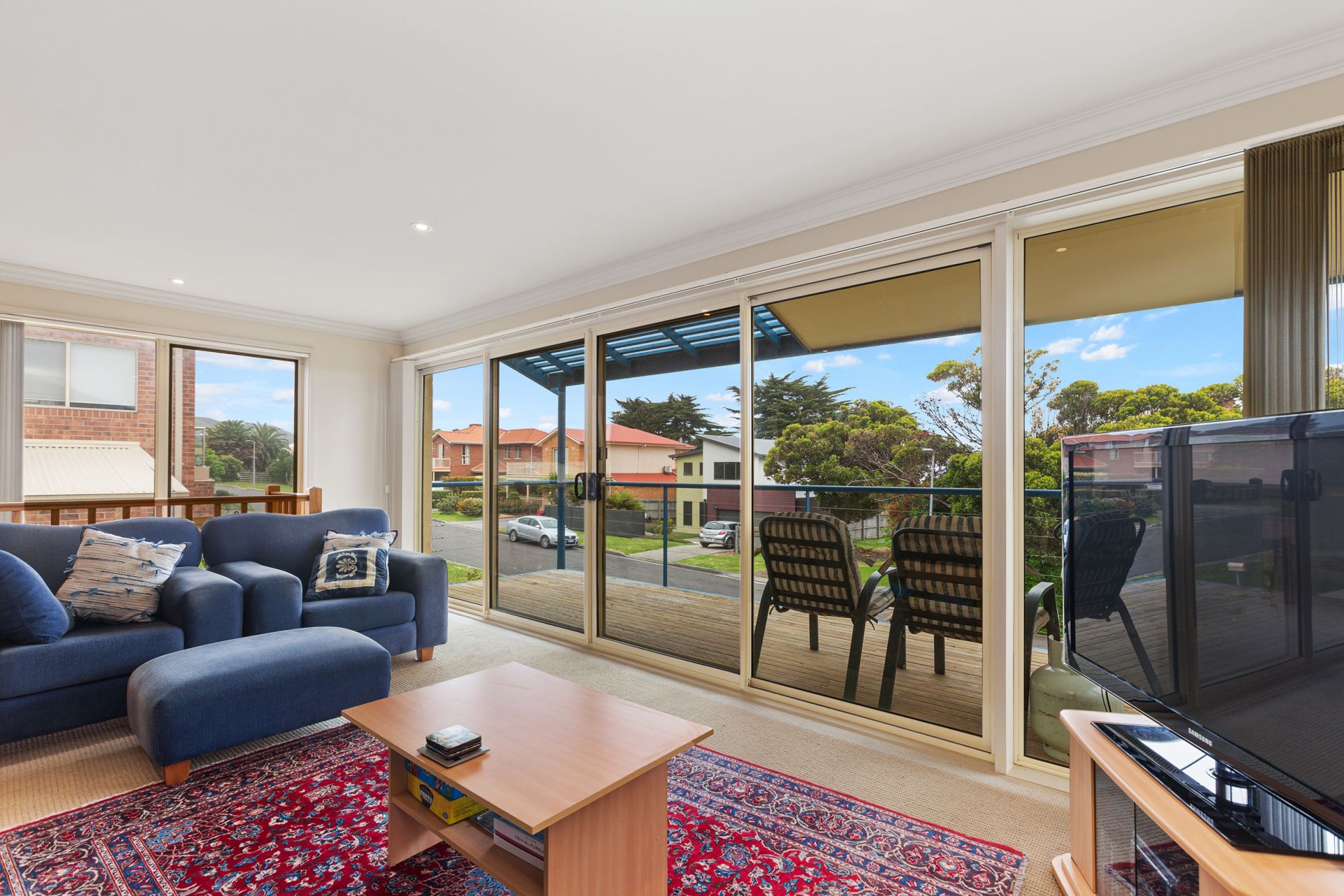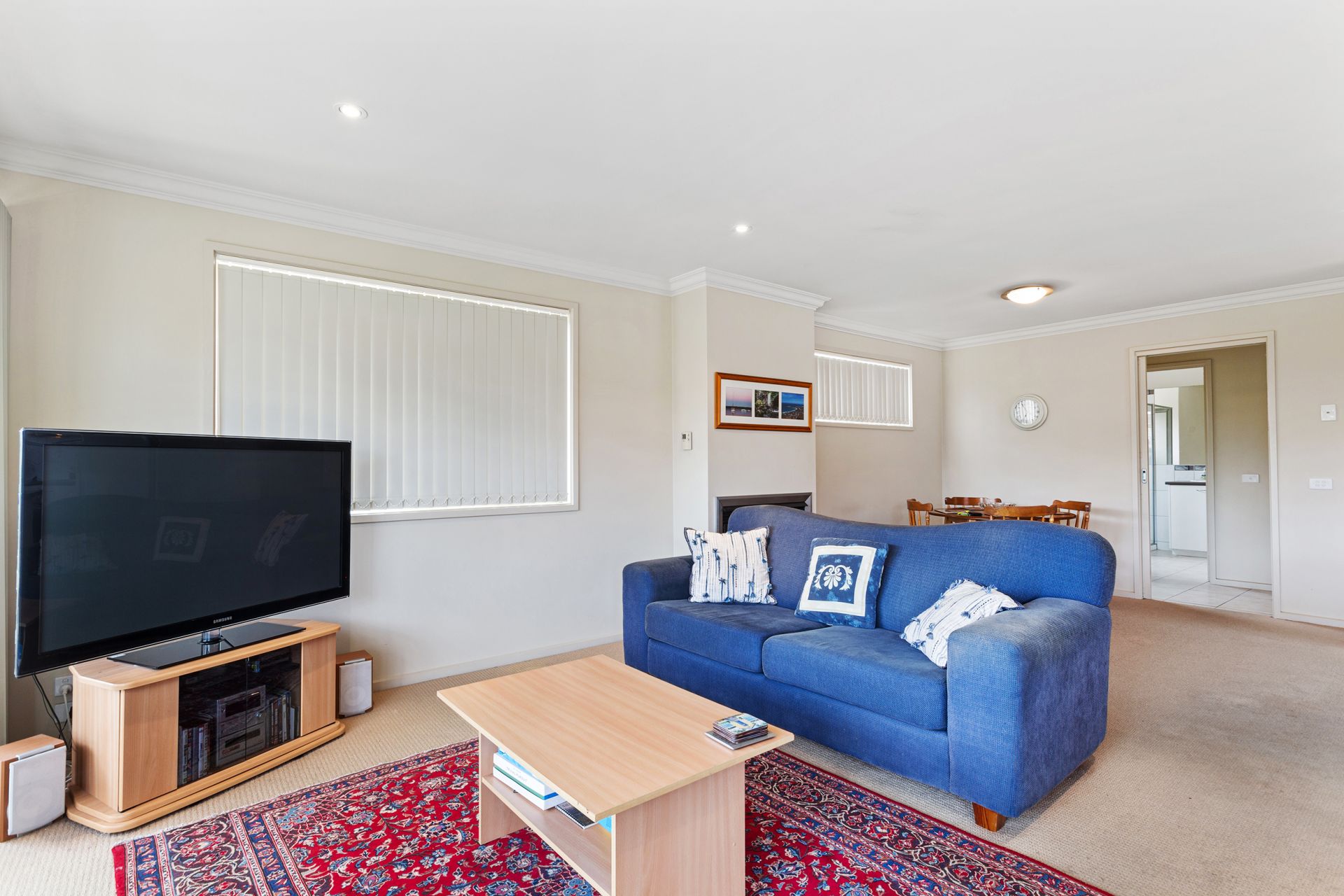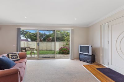 Prominently up front with great street appeal is this three bedroom two storey townhouse delivers the quiet, the security and the safety of a ‘court,’ plus the convenience combined with the sights and sounds of the ocean. With a sea view and the beach just around the corner from your door.There are two bathrooms, one with spa bath, open plan living/dining/lounge with some sea views, gas log fire and sunny balcony. The over sized lock up garage has access into the house and access to the rear court yard, and boasts loads of storage space. There are two separate toilets and a separate laundry.