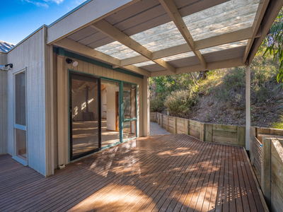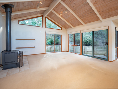 If you are searching for a beach home to rent that is tucked away in a quiet area of Anglesea and backing on to national park, this three bedroom, two bathroom property will certainly appeal. A clever split level floor plan comprising of open plan kitchen, dining, living on the top level with the bedrooms, bathrooms, separate w.c. and laundry on the lower level. Feature windows in the cathedral style ceiling let in an abundance of natural light throughout the top floor living space and there is sliding glass door access to a covered deck perfect for entertaining. The slow combustion wood fire and split system ensures year round comfort and the native garden provides low maintenance easy living. Other features include dishwasher, built in robes, ample storage, bathtub, en-suite and walk in robe off master bedroom, carport and extra off street parking. Located in a quiet street on approximately 623sqm (approximately) this property is perfect for anyone looking for a permanent rental home or coastal weekender. Call to arrange an inspection.