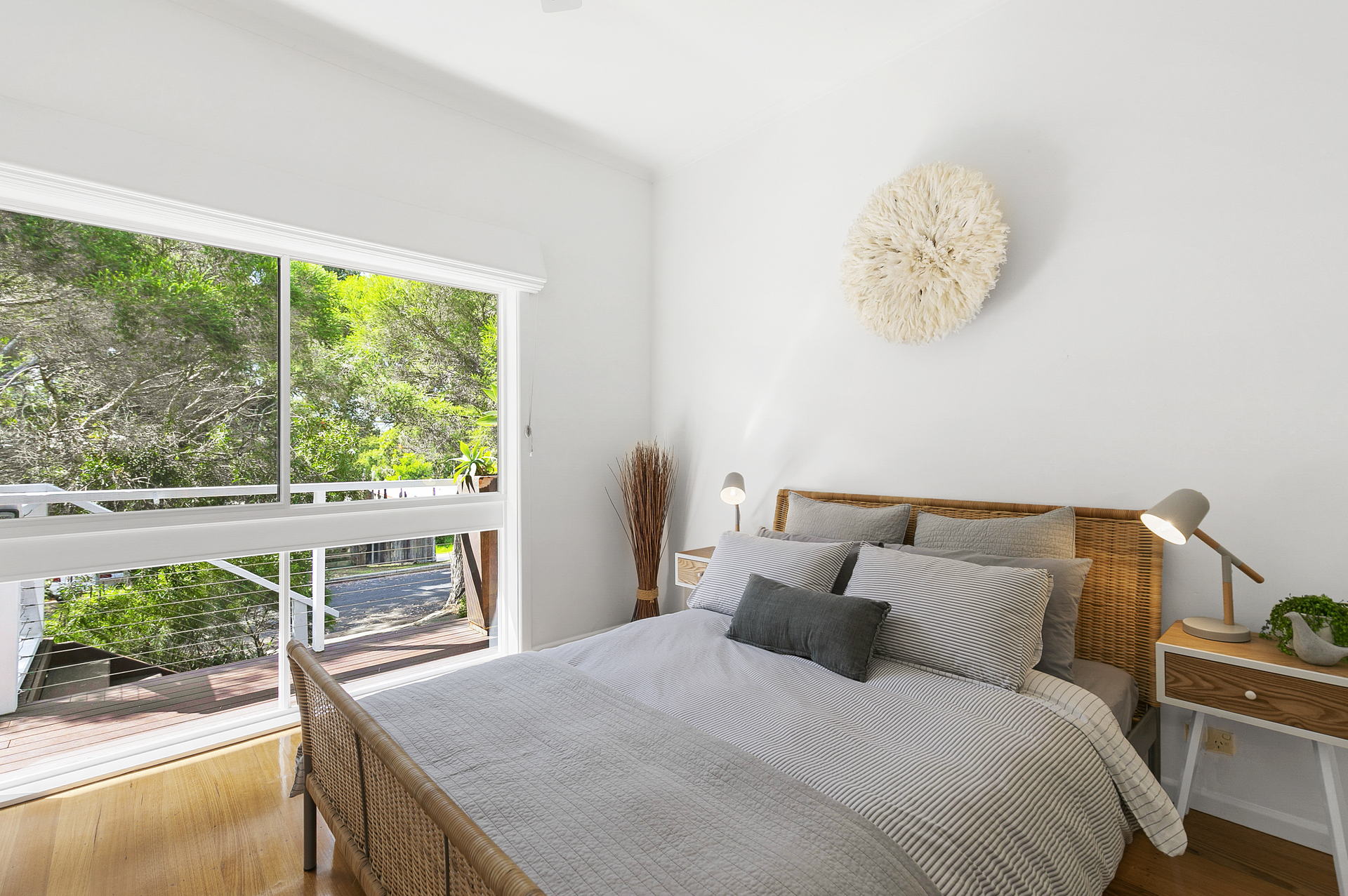Freshly updated and beautifully presented it features light filled open plan living with a freestanding log fire. The adjacent master bedroom (with built in storage and two way ensuite bathroom) and the second bedroom are both generous in size and light filled. A large family room or possibly a third bedroom with floor to ceiling glazing and direct access to the attractive and private north facing side deck space completes the versatile floorplan.