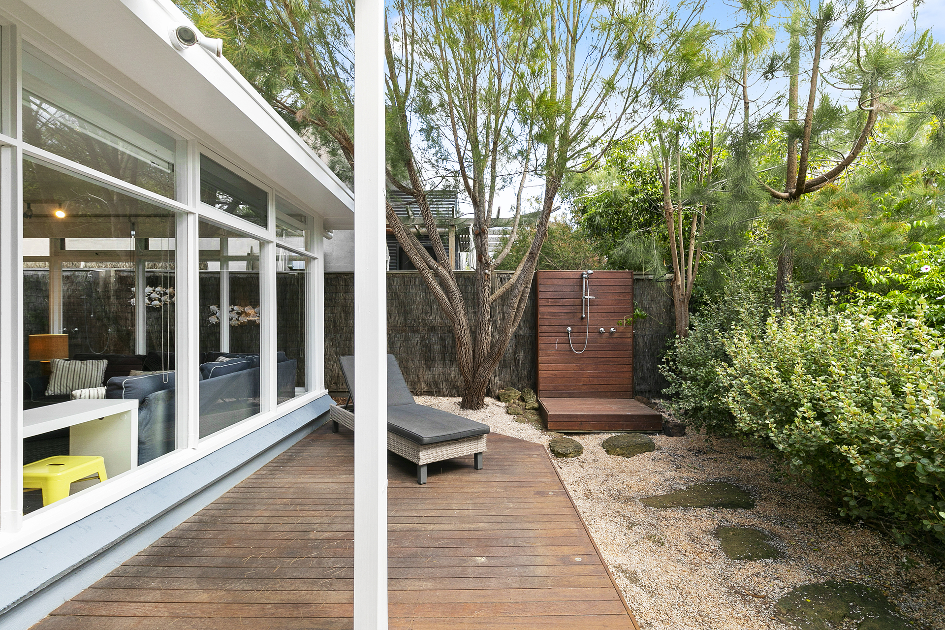 Bonus extras include a hot and cold outdoor shower; an externally accessed powder room; two garden sheds for secure storage; and ample off-street parking for a caravan or boat.