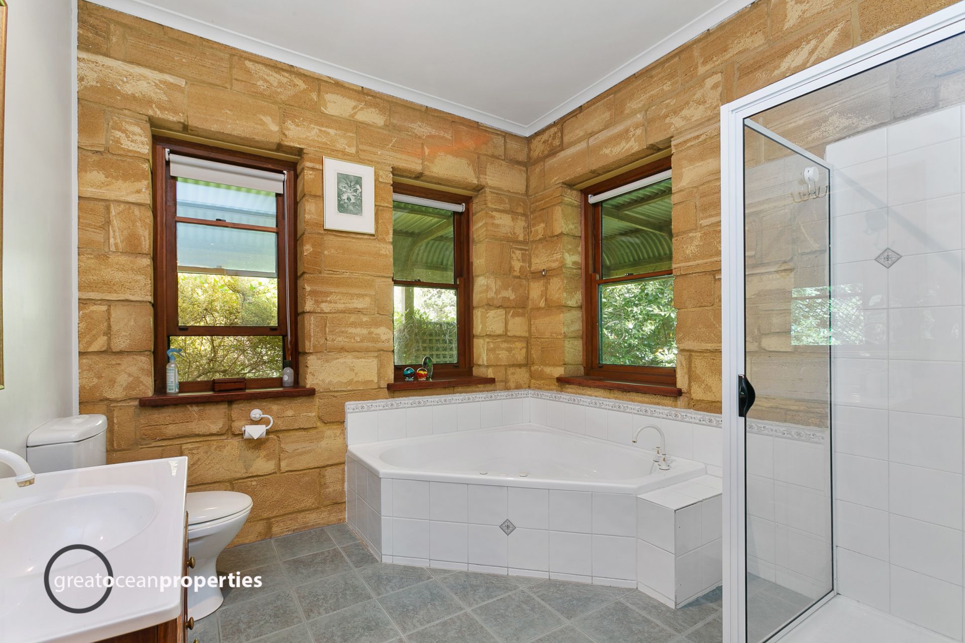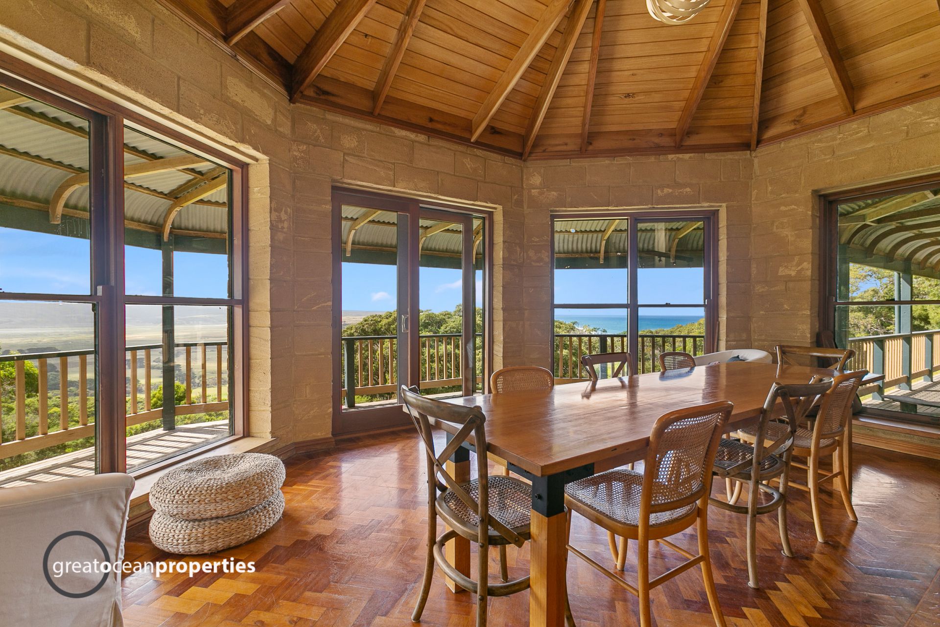 This artisan built home is handmade from hand cut local limestone, and locally milled timbers. All windows are double glazed.