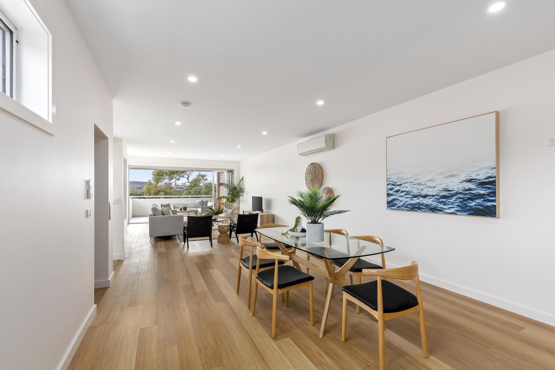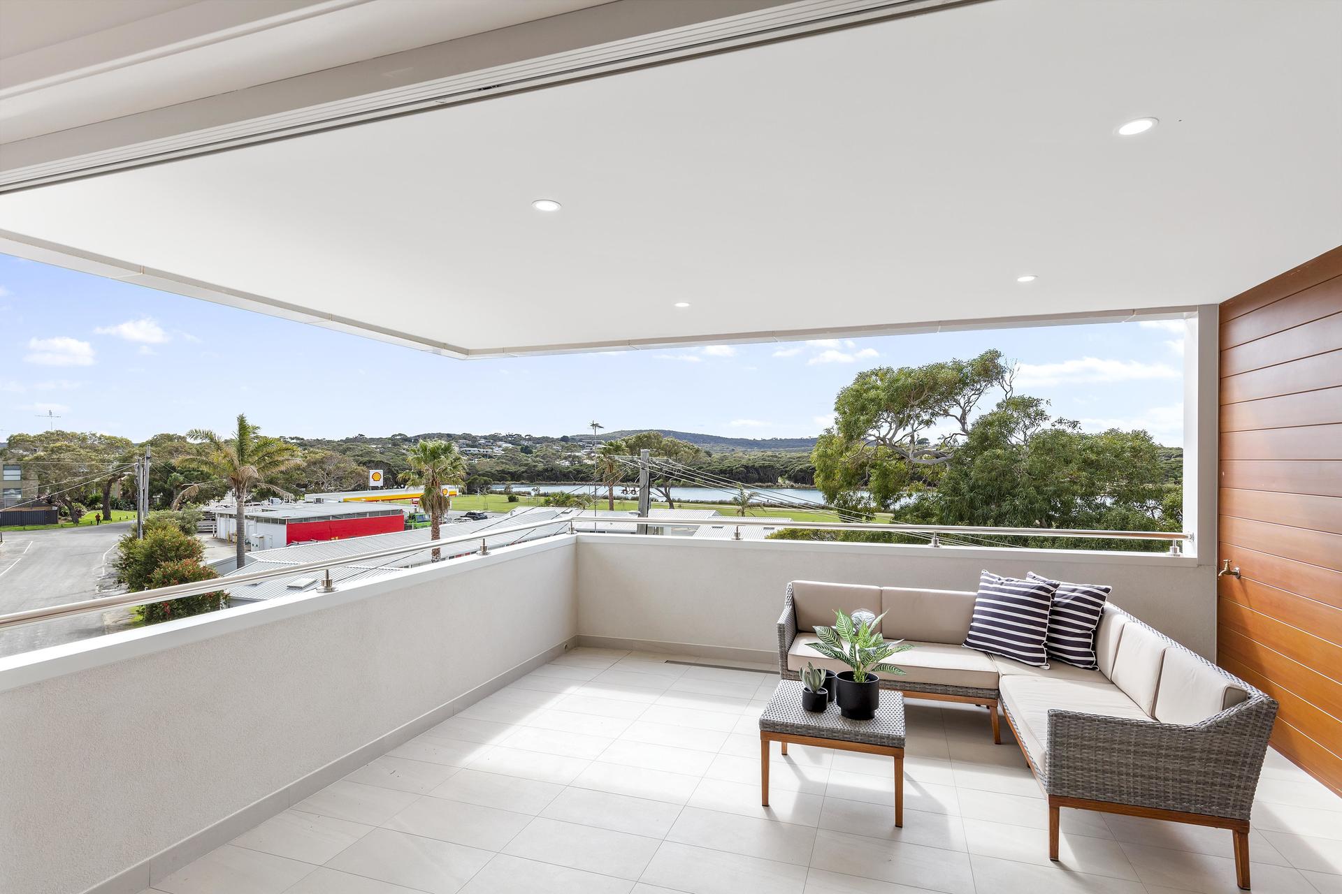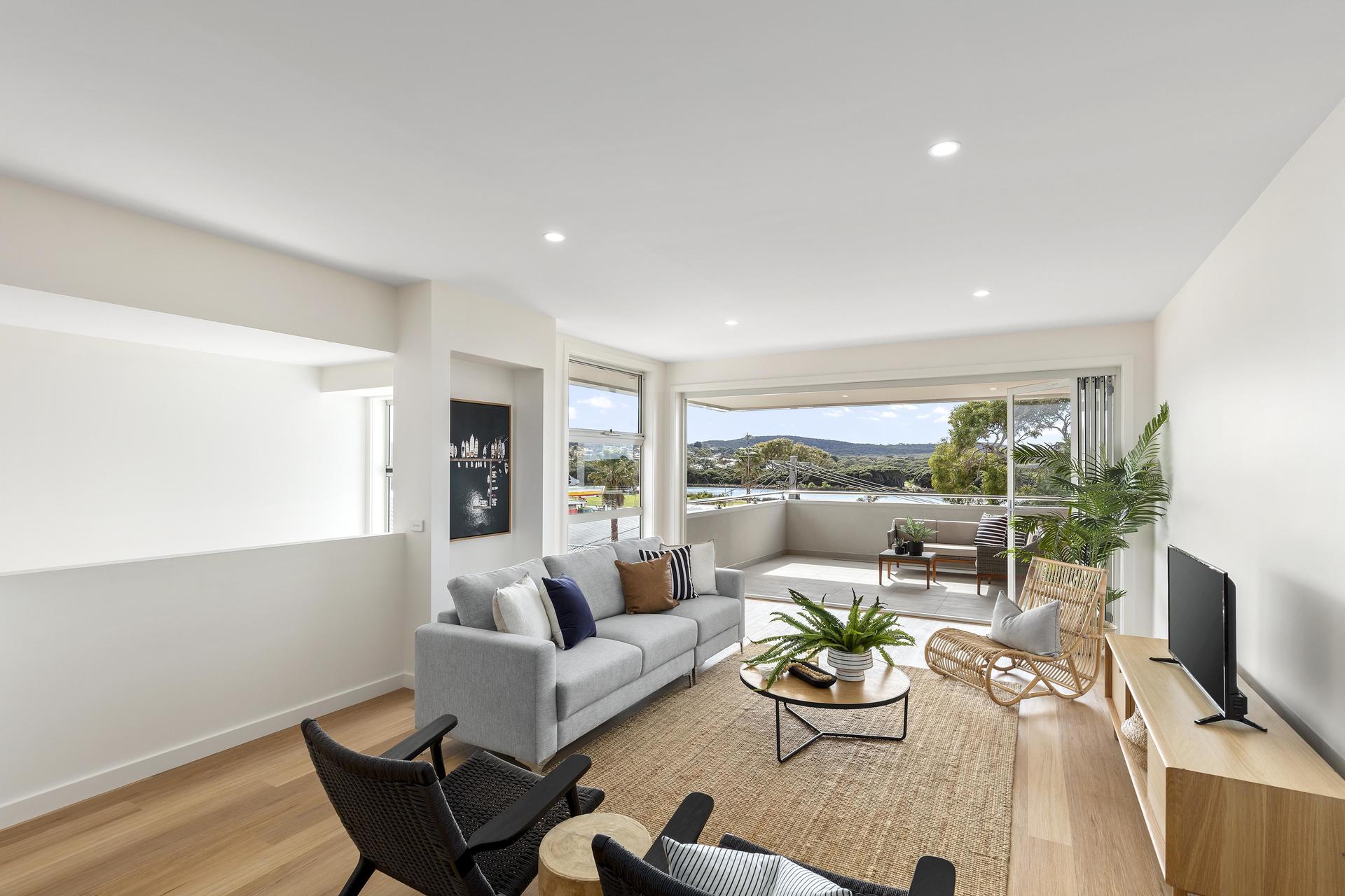 Extravagance awaits at this custom designed family home offering contemporary coastal living on an impressive scale. If you are searching for a modern home conveniently situated a stones throw from the river and beach and within minutes walking to a range of Anglesea’s cafes, shops and restaurants then this three storey, 4 bedroom, 3 bathroom home will certainly appeal. With multiple living areas and all the modern amenities you would expect enjoy river views from the elevated position, relax in the large open plan living, kitchen, dining space of the top floor with covered outdoor entertaining area. Ground floor level comprises two bedrooms both with built in robes, one central bathroom, large separate laundry, a living area and garage access. Level one includes two master bedrooms both with ensuite and walk in robes, a second living area ideal for rumpus room, retreat space or large study. Centrally located in the heart of Anglesea with panoramic views that harness the river and treetop aspect for relaxed coastal living at its best. Perfect as your coastal getaway or permanent home.