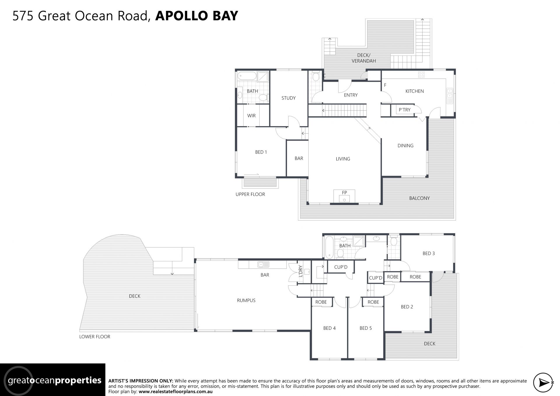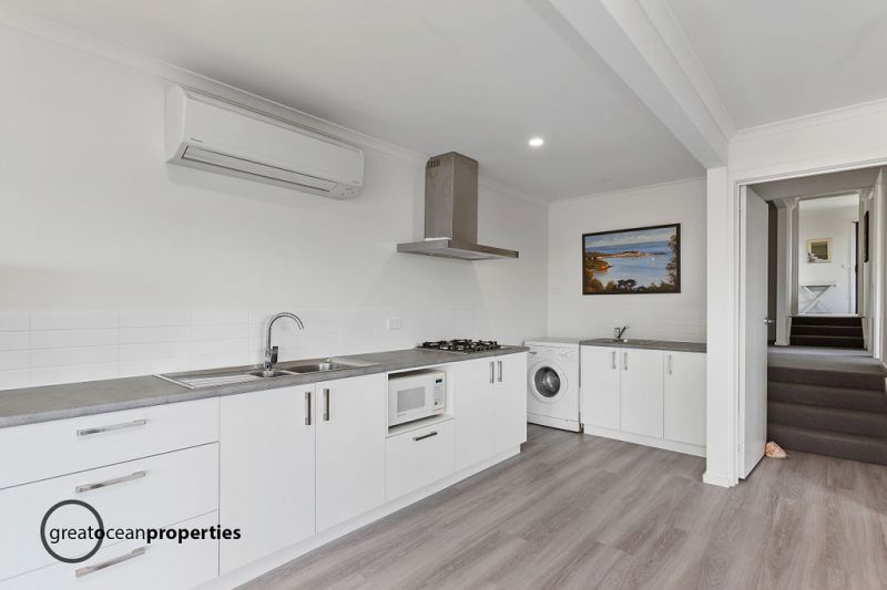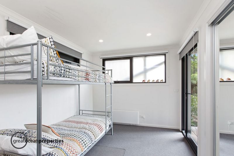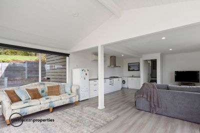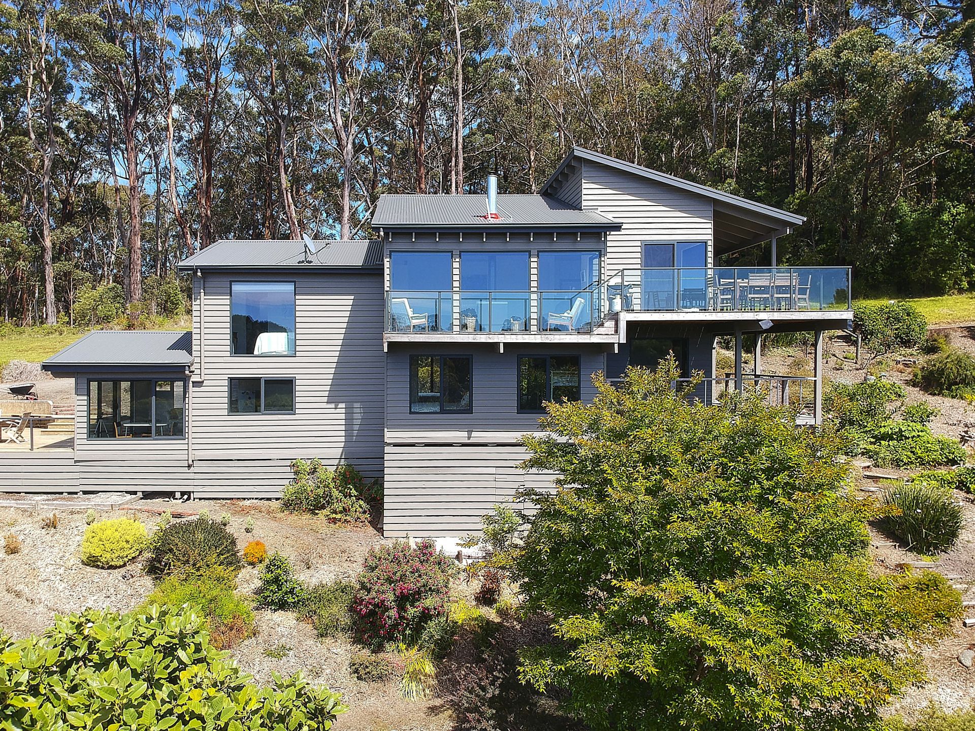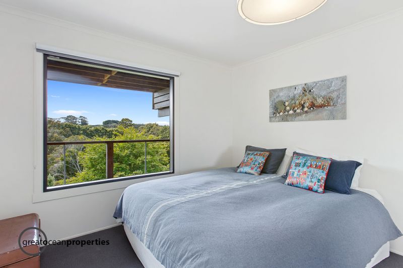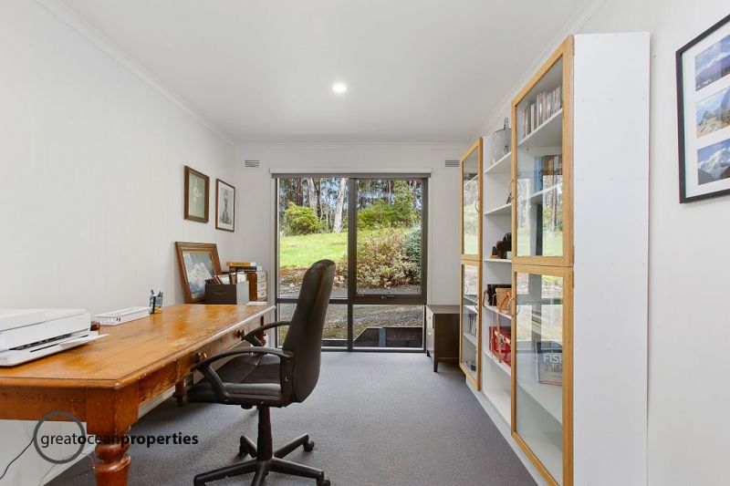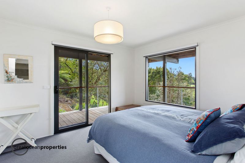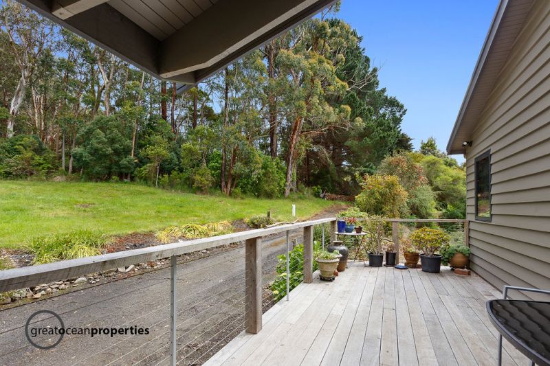 Set high on the hills with a spectacular view of the ocean and the rolling pastures and forests, this solid five-bedroom, 3 bathroom, two living area home is on 10 acres of land (4 ha) and is less than 6km from Apollo Bay. This house has recently been fully renovated, so now has all double-glazed windows, 4 new decks, new bathrooms, new floors and re-painted inside and out. There has been a lot of upgraded electrical work with down lights and ceiling fans, there is a large wood heater and split air-con systems up and down stairs.