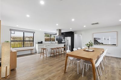 This perfectly presented single storey home epitomises the Anglesea beach house experience, only minutes to the river, parks, shops and schools. This tastefully updated home speaks of easy living for those seeking a low maintenance, high quality lifestyle. The well-appointed kitchen with generous cabinetry also features an island bench space which will appeal to the keen chefs in the family. The interior offers a brightly lit, warm homely aesthetic with seamless access to the outdoor under cover deck area and large backyard.
