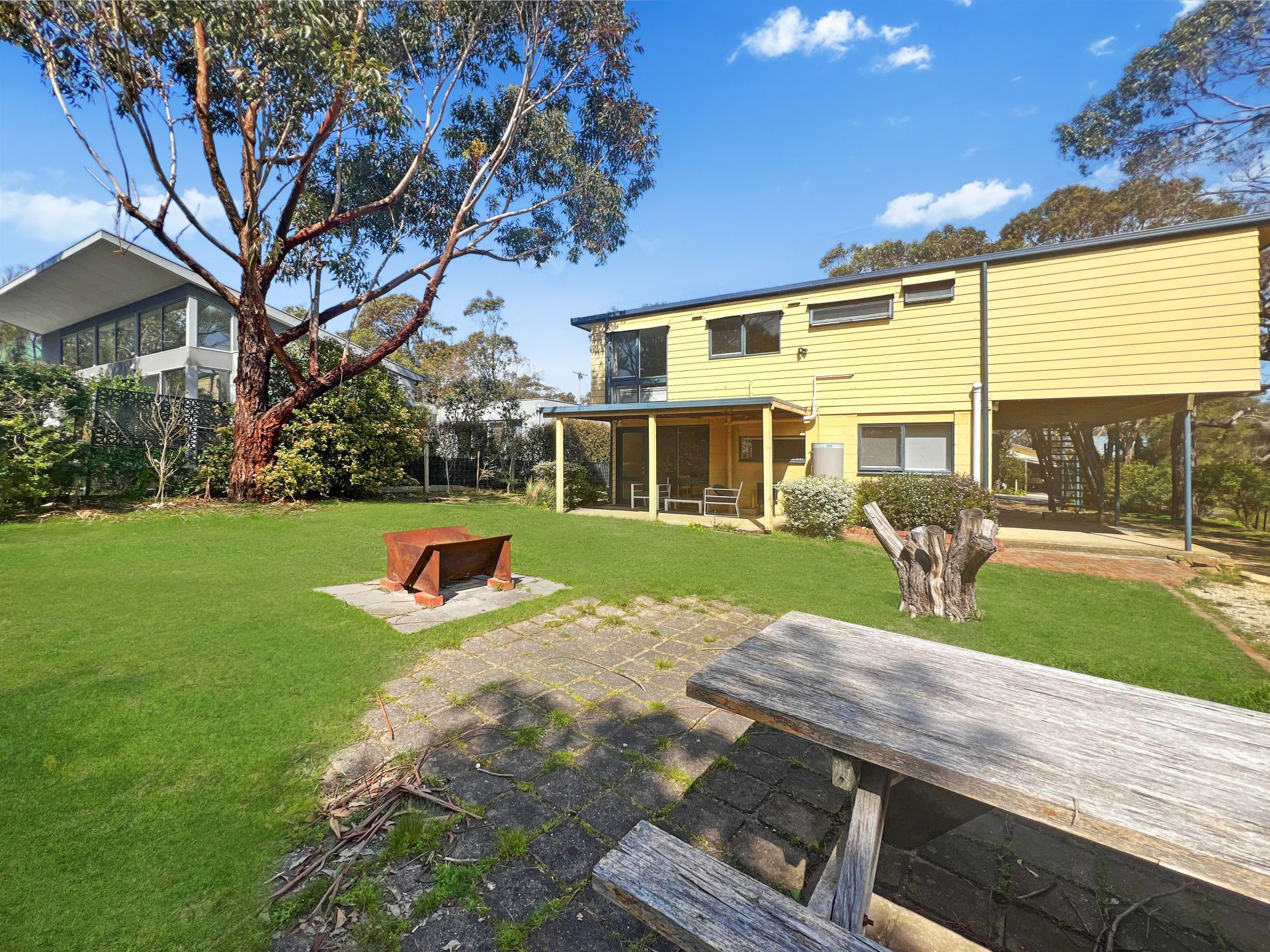 This two storey house is open plan with two living areas, the upstairs level includes 3 bedrooms with a delightful tree top outlook and wrap around deck.