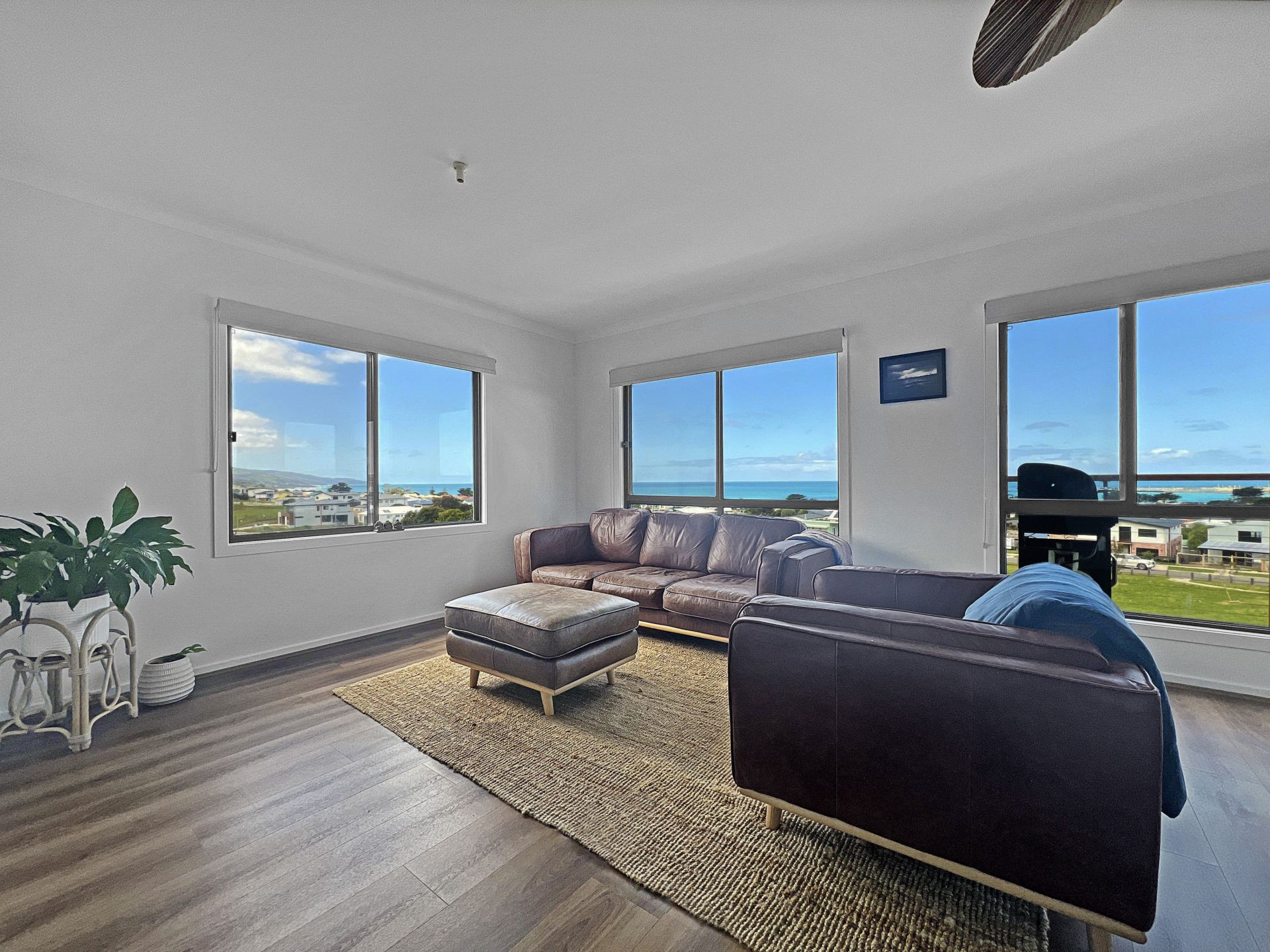 This near-new 4 bedroom property in the emerging neighbourhood of Apollo Bay North offers the perfect blend of luxury and comfort. Set on a generous 503sqm block, on the high side of a quiet cul-de-sac, it features high-quality finishes and spacious living over two levels. Located opposite a 2-acre nature reserve, the spectacular outlook faces Apollo Bay township and the deep blue sea.