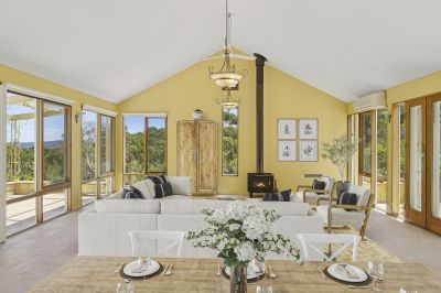 Set on just over two hectares of partially cleared bushland, this exceptional property enjoys a beautiful rural setting with distant ocean views. Architect-designed by Sungrow, renowned for their sustainability focus, and craftsman built from Thermalite blocks and cedar, the home blends thoughtful design with enduring materials.