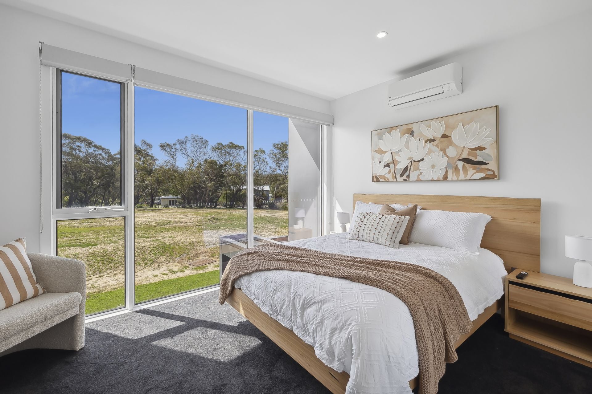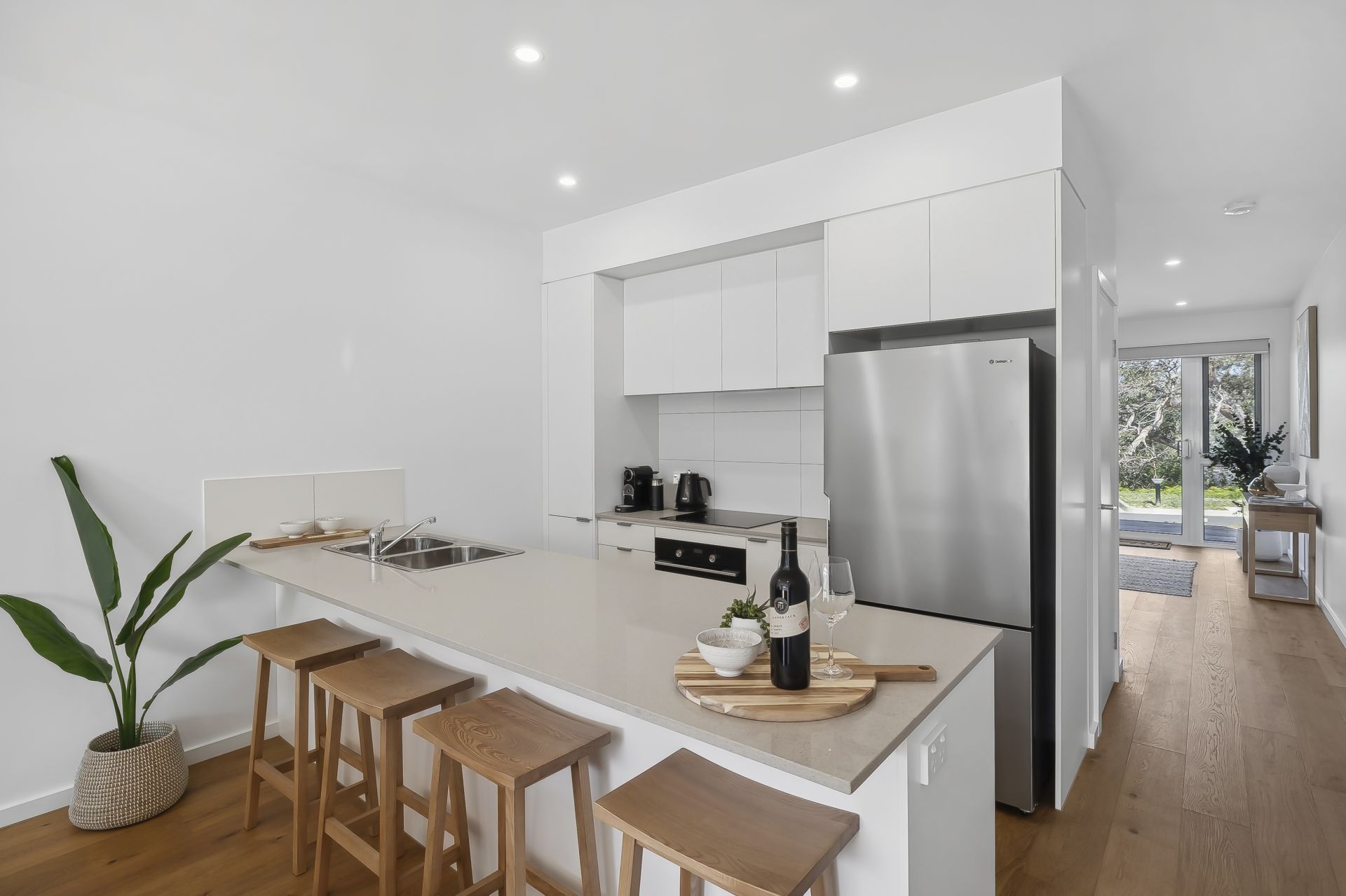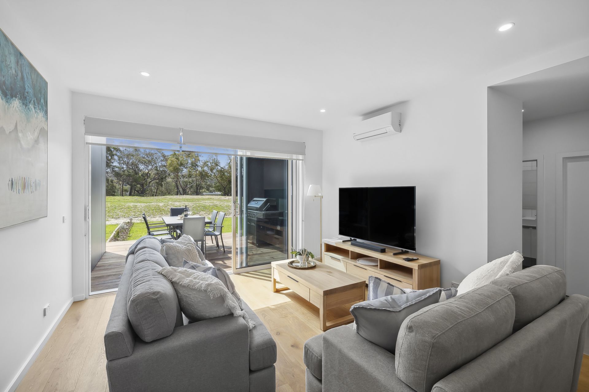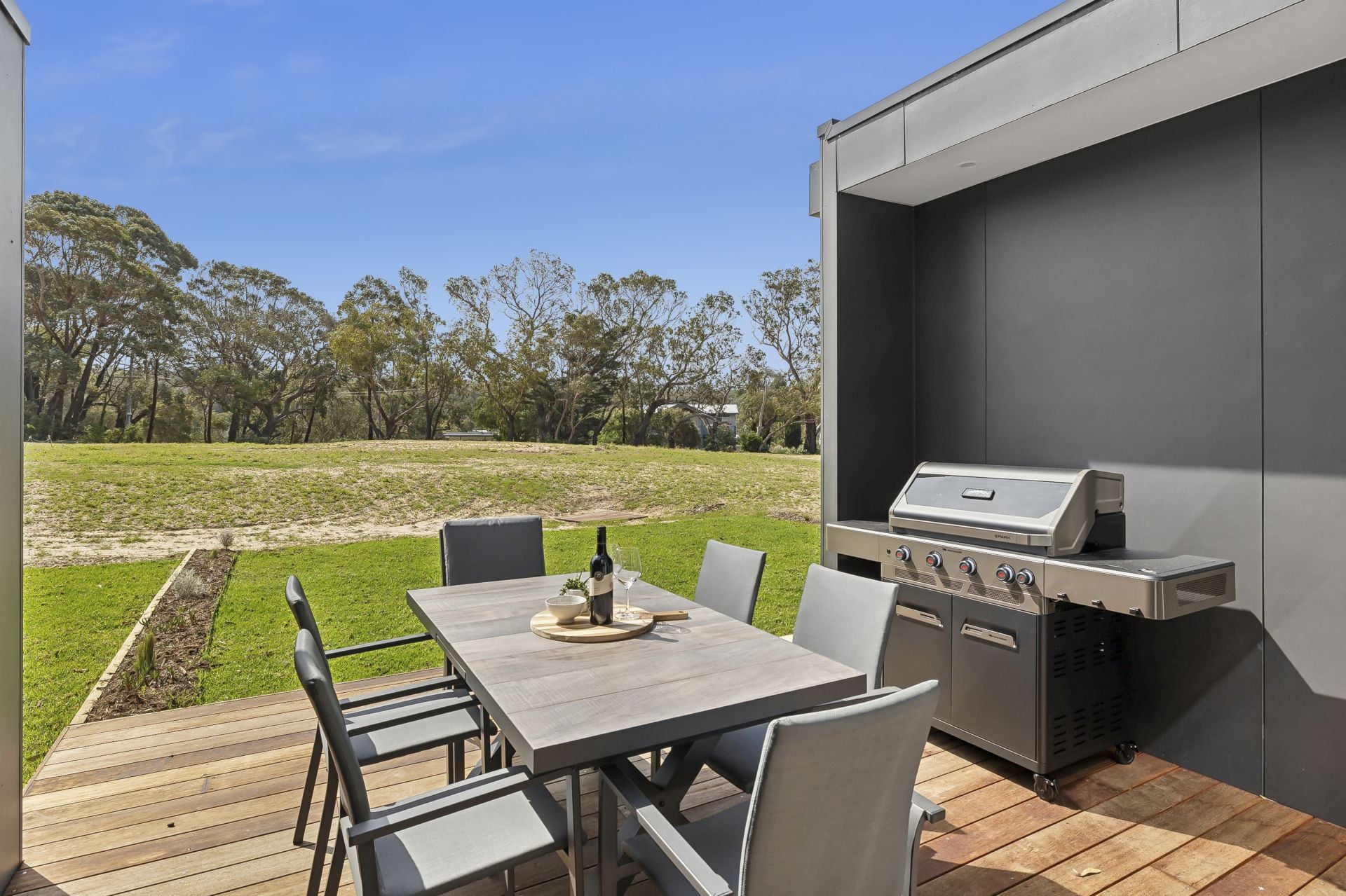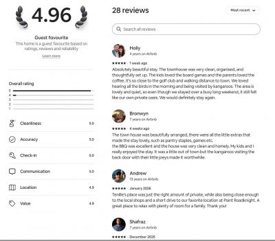 Townhouse 10 has been cleverly designed to maximise space, light and comfort without excess. The open plan kitchen and living area flows seamlessly to a north facing deck drenched in sun, a rare and valuable feature at this price point in Anglesea. Three generous bedrooms accommodate up to six guests, all with built-in storage, while elevated views across the golf course and treetops provide a relaxed coastal outlook.