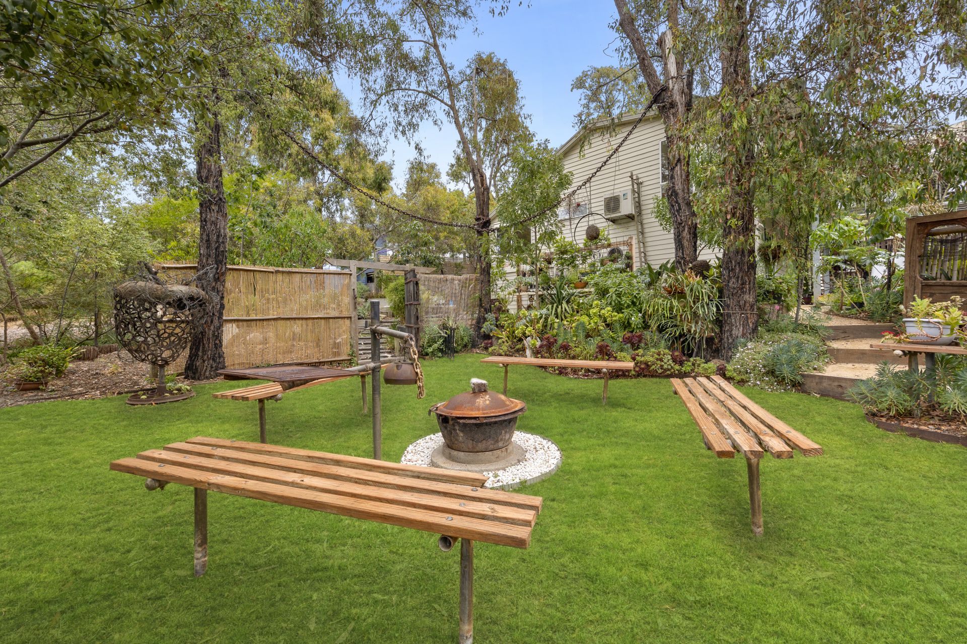 The gardens are truly special — lush, layered and lovingly established, creating a series of private outdoor moments that feel more like a nature retreat than a suburban backyard. Meandering paths, specially selected plantings and secluded corners invite exploration and reflection, while the nearby walking track at the end of Narani Way provides direct access to the natural beauty of Painkalac Creek, a cherished feature for local residents.