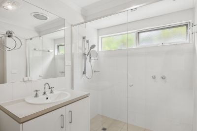 Accommodation is thoughtfully zoned. Upstairs bedrooms enjoy garden outlooks and easy access to the main living areas, while the lower level offers additional bedroom space, a bathroom and a large rumpus room — ideal as a second living zone, guest retreat or teenage haven. Complementing this is a dedicated shed/multipurpose room, perfect for hobbies, a studio, workshop or secure storage.