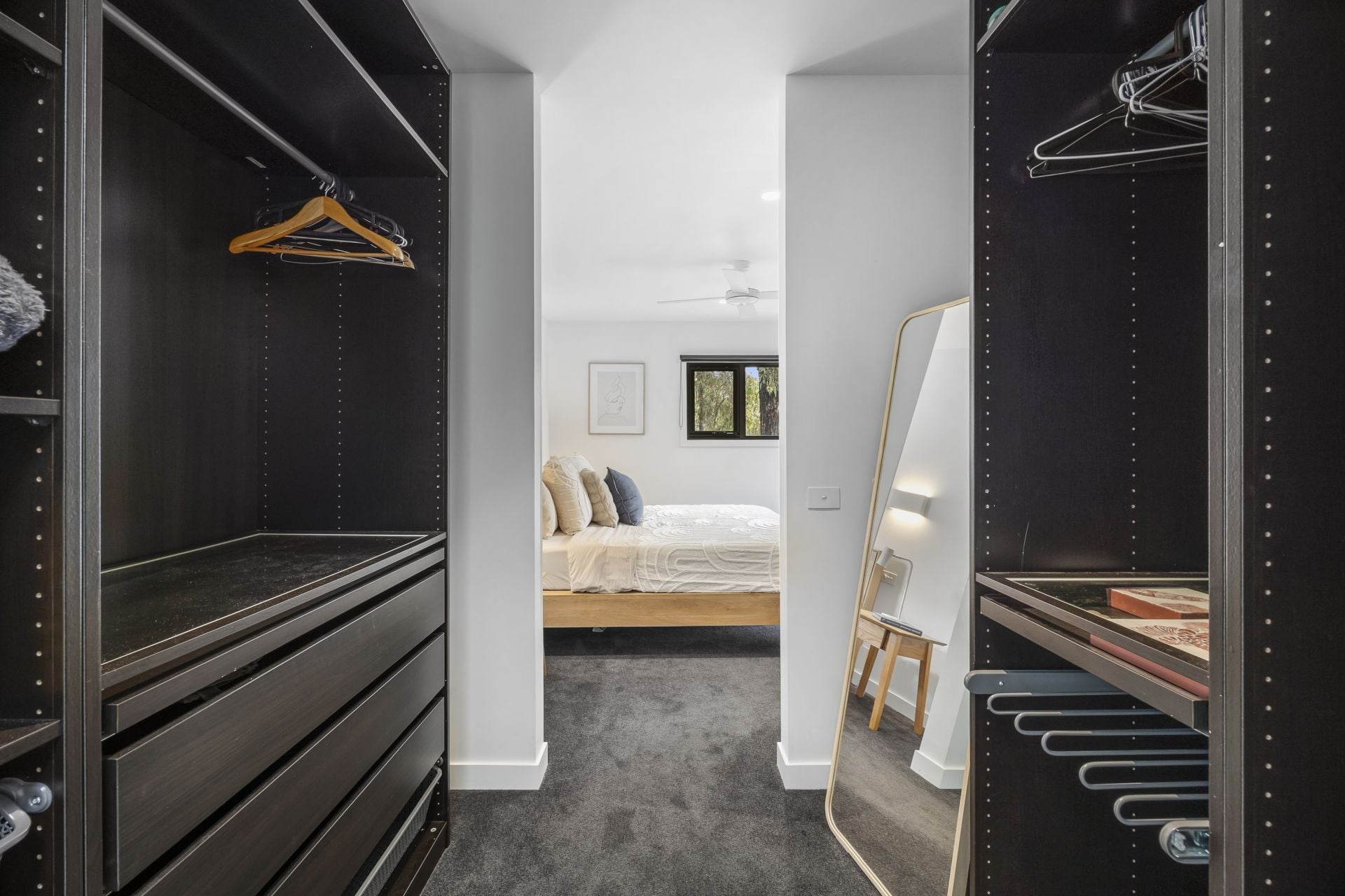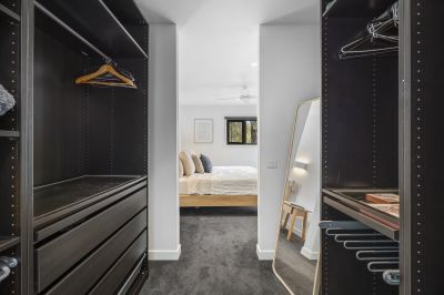 Also on this level, the main bedroom is privately positioned and generously proportioned, complete with walk-in robe and ensuite. A separate second bedroom provides ideal accommodation for guests or family, while a central powder room and well-planned stair access enhance everyday convenience.