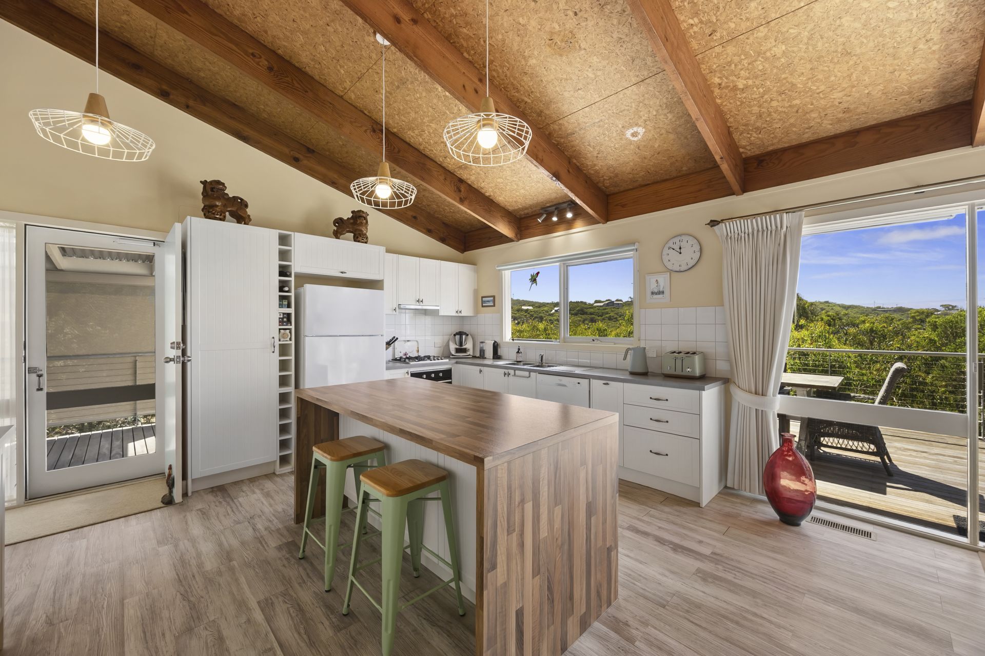 There is something deeply comforting about a property that has been quietly cared for over decades. With only two owners since new, from the moment you arrive at 6 Werona Road, you sense it — this is a home that has been enjoyed, respected and thoughtfully looked after and that feeling carries through every space. The east facing aspect welcomes soft morning sunlight across the expansive deck and into the living areas — the kind of light that encourages slow breakfasts, early swims and unhurried starts to the day. By afternoon, the home is naturally protected from the westerly sea breeze, creating a calm, sheltered environment when others are packing away outdoor furniture. The cathedral ceiling with exposed Oregon beams gives the living space warmth and character. It’s the kind of room where family gathers effortlessly — summer doors open wide to the deck, winter evenings centred around the fire. The decking itself becomes an extension of the home. Long lunches, quiet reading, children playing below, friends staying longer than planned. It faces both east and north, so you can follow the sun throughout the day. Outside, the established native gardens create privacy and softness. There are spaces to gather around the firepit, places for children to explore, and room to simply sit and listen to the ocean in the distance. There is also plenty of parking options for all the family. Importantly, this is a home that allows you to relax. Whether you use it as a permanent residence or a coastal retreat, it offers a sense of security and ease. You can arrive, unlock the door, and immediately feel at home. Only a short walk to the patrolled Fairhaven surf beach, the lifestyle here is simple: morning swims, sandy feet, afternoon naps, sunset walks. A genuinely comfortable coastal home that works beautifully in all seasons.