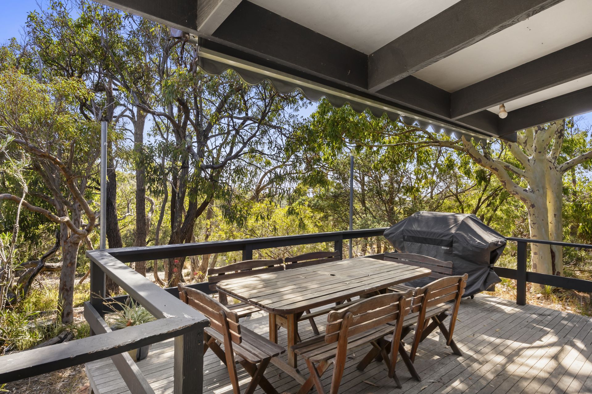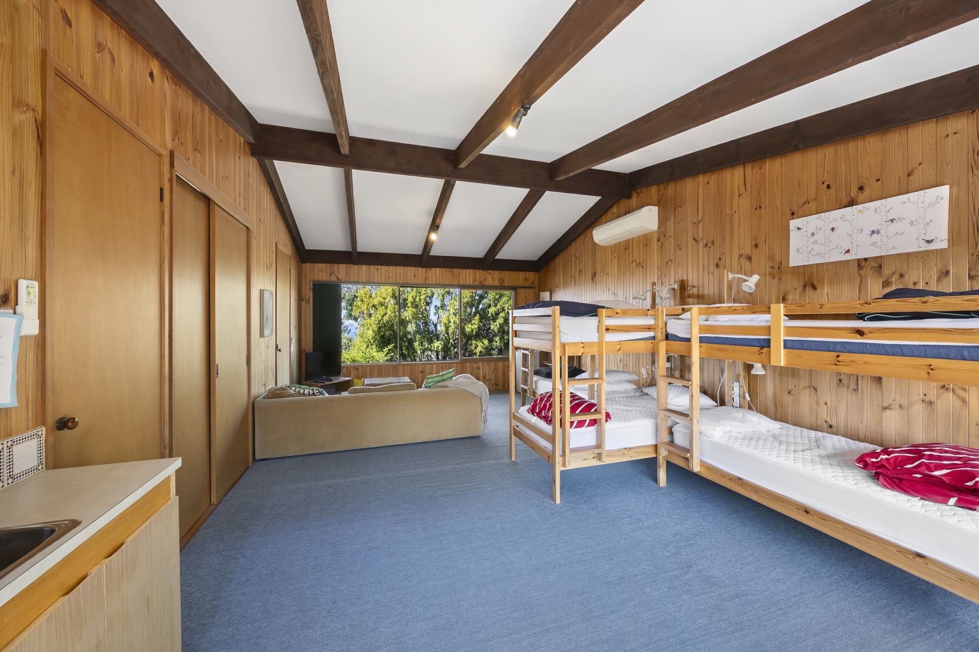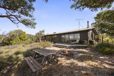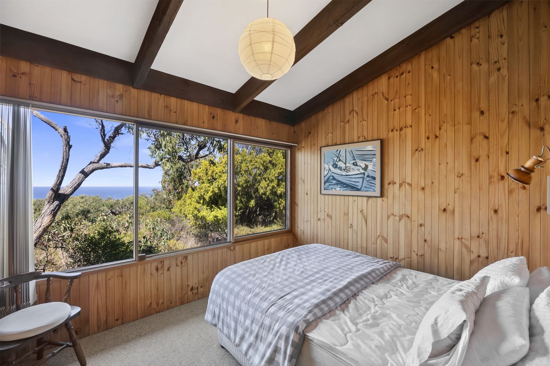 Set high above Fairhaven beach on an expansive 3,650sqm (approx.) allotment, this property is a cherished coastal retreat offering beautiful ocean views, privacy and timeless beach house charm. From its elevated position, sweeping vistas stretch along the coastline toward Lorne — visible from the open plan living zone and two of the bedrooms — delivering ever changing seascapes from dawn through to sunset. The heart of the home is a wonderfully spacious open plan living, dining and kitchen area, where soaring timber-lined ceilings and warm natural finishes create an inviting, lodge like atmosphere. Sunlight pours in through wide windows framing the surrounding bushland and ocean beyond, while a cosy wood fire anchors the living space, making it the perfect place to gather after long beach days. Reverse-cycle heating and cooling ensure comfort throughout every season. The original timber lined kitchen remains full of character, with solid timber benchtops, generous storage and a leafy outlook through the window — a space that feels honest, warm and wonderfully connected to the home’s coastal origins. Perfectly functional as is, it also offers scope for future enhancement should new owners wish to add their own touch, without losing the soul of the home. (Pro tip: paint it internally all white throughout to turn it into a timeless coastal retreat). Sliding doors open to generous outdoor decks that extend the living experience. The expansive rear deck is ideal for alfresco dining and entertaining among the treetops, while the front deck captures some of the most impressive coastal views in Fairhaven — an unbeatable spot for morning coffee, sunset drinks or simply soaking in the outlook.Accommodation is well suited to both family use and holiday letting, with three bedrooms and two bathrooms. A standout feature is the oversized third bedroom, designed as a true kids’ retreat with three built-in bunk beds, its own sitting zone and direct connection to the outdoors. It’s the kind of space that creates lifelong holiday memories — sleepovers, rainy day games and relaxed afternoons after the beach — while easily accommodating extended for family or larger groups. The property is currently a popular holiday rental that is steadily booked by those looking for non urban experience where the bush meets the beach. Inspection by appointment.